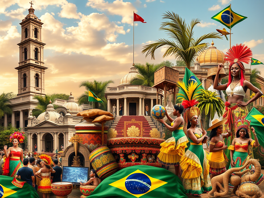 • Culinária: A feijoada, o acarajé e o churrasco representam influências africanas, indígenas e europeias.