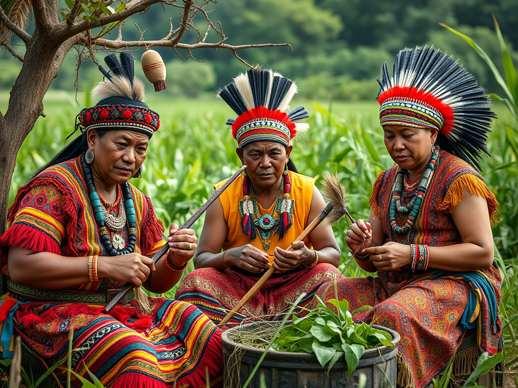 • Artesanato: Técnicas de cerâmica, tecelagem e pintura corporal.